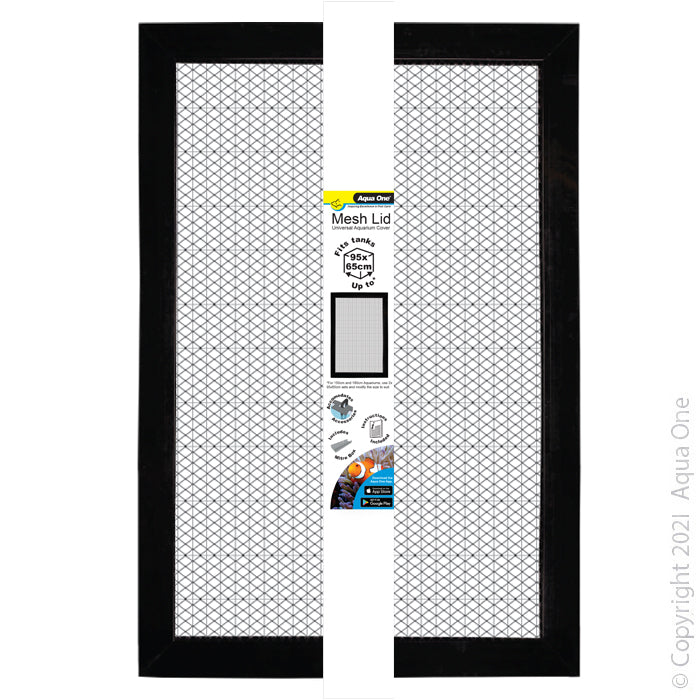 Aqua One Mesh Lids sits effortlessly on your open-top aquarium whilst providing a secure environment for your aquarium inhabitants. The sleek and durable plastic frame and nylon mesh construction can be customised to accommodate rim-mounted equipment creating a seamless aesthetic for your aquarium.
