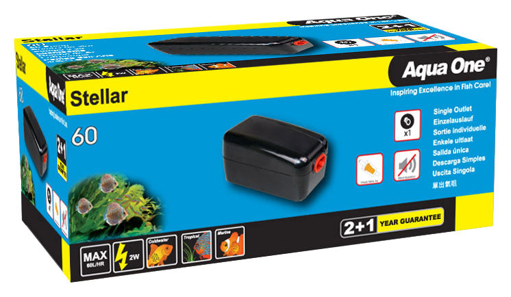 Aqua One Stellar Air Pumps will help you provide the necessary oxygen within your aquarium, creating a healthy environment for your fish. Stellar Air Pumps are quiet, powerful and energy efficient.