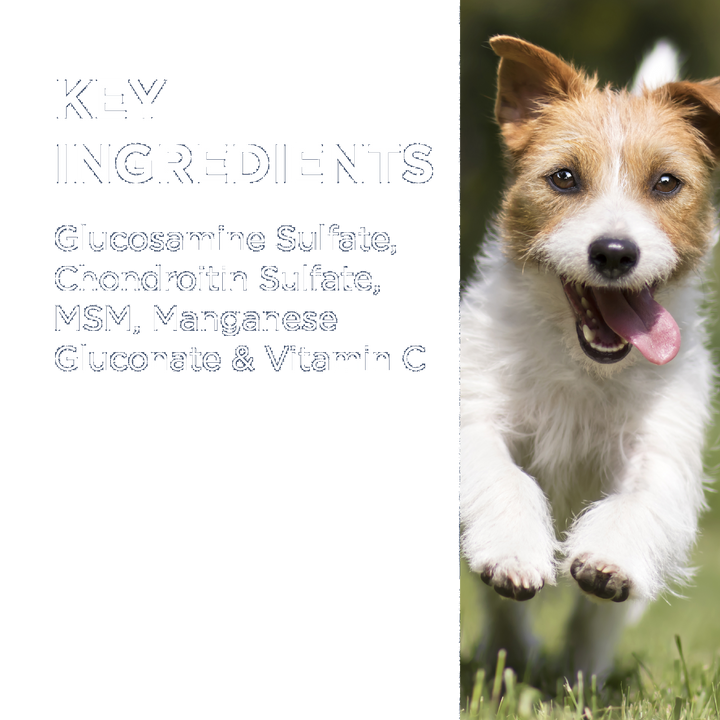 - Contains glucosamine sulfate and chondroitin sulfate for joint cartilage nutrition