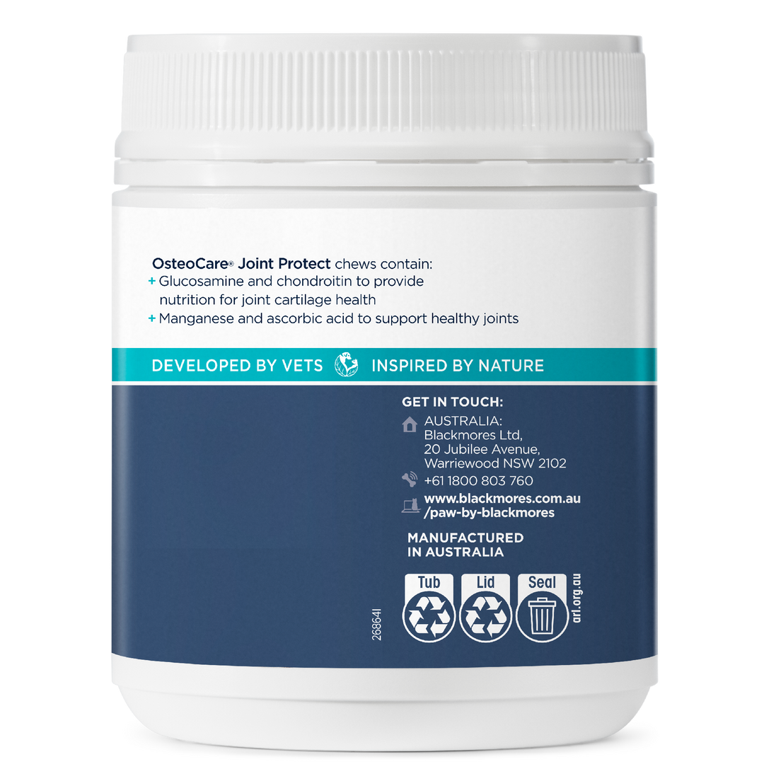 These tasty fish and chickpea protein chews provide everyday joint care, helping to improve joint function in dogs of all ages with a balanced combination of vitamins and minerals. If your dog is showing signs of stiffness, limping, or a reluctance to run and play, osteoarthritis could be the cause. This supplement can be used if your dog is showing symptoms, or as an aid of preventive measure, and is a great daily treat they’ll love. Containing glucosamine and chondroitin which are naturally found in joint cartilage, these chews are a great option for young active dogs as well as older dogs at risk of developing osteoarthritis. Easy to give your pet daily, they come in a convenient to store bottle and will help keep them running and fetching happily.